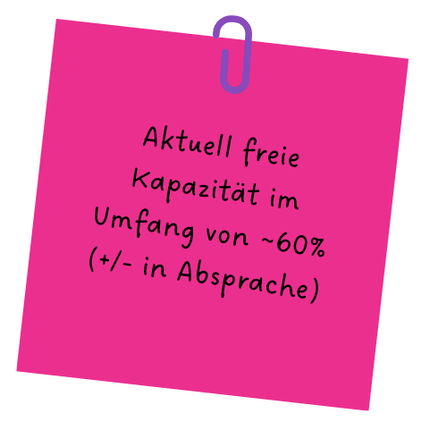 Dabei unterstütze ich Projektauftraggeber und Organisationen als Projektleiterin oder Sparringpartner.